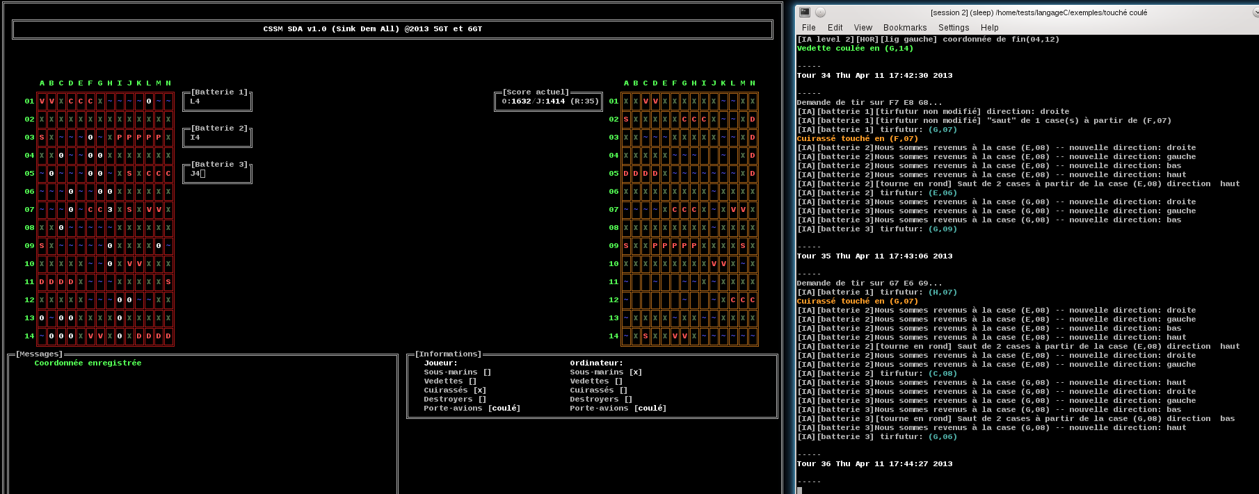Je vous propose un nouvel élément à utiliser : BattleShip en C (essai)
