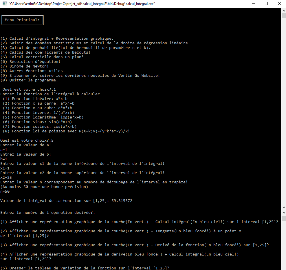Grâce à ce calculateur d'intégral vous allez pouvoir calculer l'intégral de n'importe quelle courbe en spécifiant la valeur des bornes inférieure et supérieure de l'intégral et également visualiser graphiquement l'aire sous la courbe! Mais ce n'est pas tout ce programme regorge de fonctionnalités mathématiques que vous découvrirez au fur et à mesure...! Pour vous faire une petite idée voyez les illustrations ci-dessous!