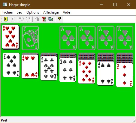 - Descripteur des jeux : Les fichiers CardsDesk.cpp et CardsDesk.h, contiennent la description des 7 jeux actuels du programme. Pour chacun un texte ASCII décrit la composition du jeu, le nombre de cartes utilisées, la disposition des piles et les règles d'usage. Les dimensions s'adaptent à la taille des cartes affichées. Les commentaires présents dans ces fichiers indiquent comment créer un nouveau jeu et pour les règles d'accès il faut se reporter aux fonctions CPile::RdCardsTest() et CPile::WrCardsTest() qui définissent les règles pour la capture et la déposition d'un paquet de cartes avec la souris dans les fonctions Drag/Drop.